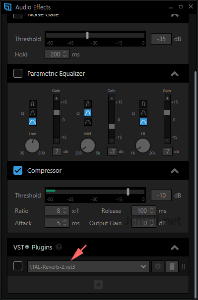 이런 오디오 효과 창이 뜨는데 여기서 쭉 내리면 VST Plusgins 라는 메뉴가 있습니다.