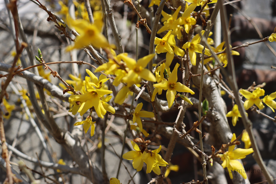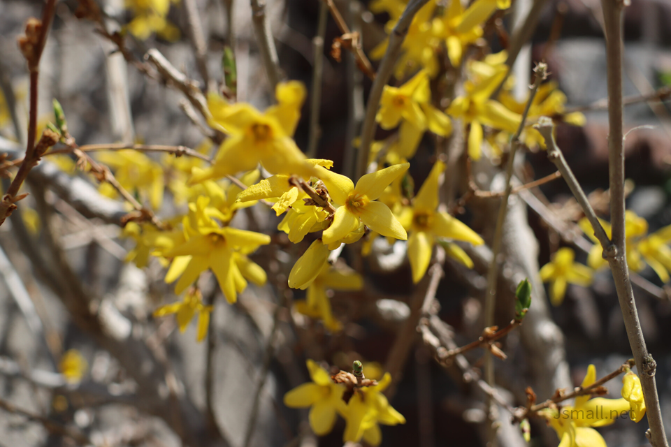 담벼락에 개나리가 폈더라구요.
