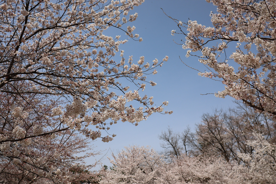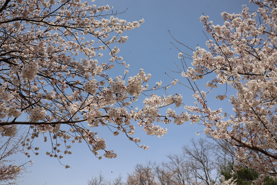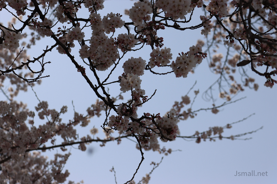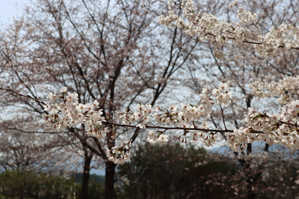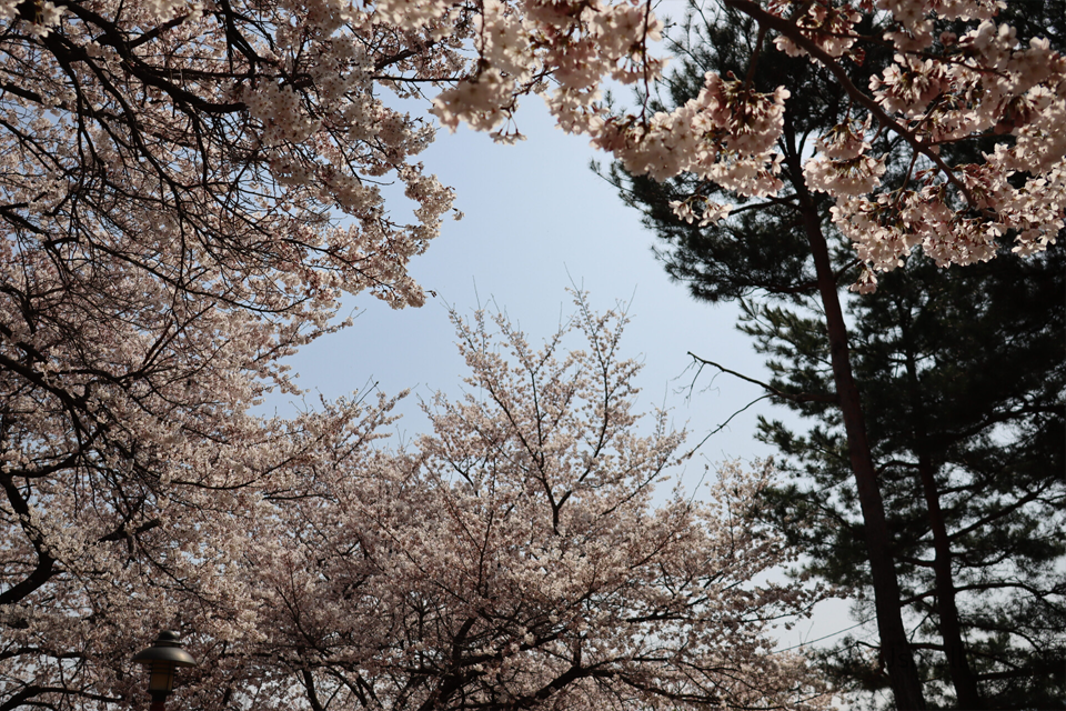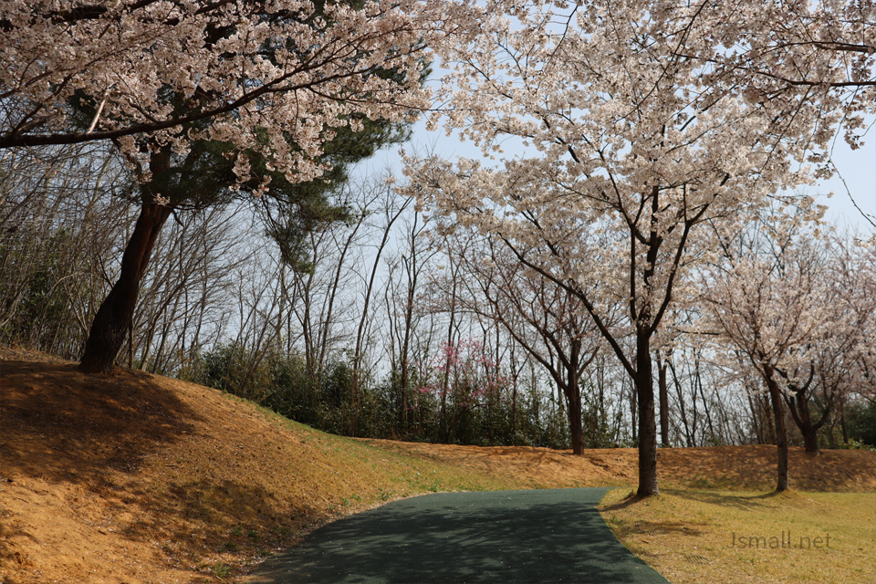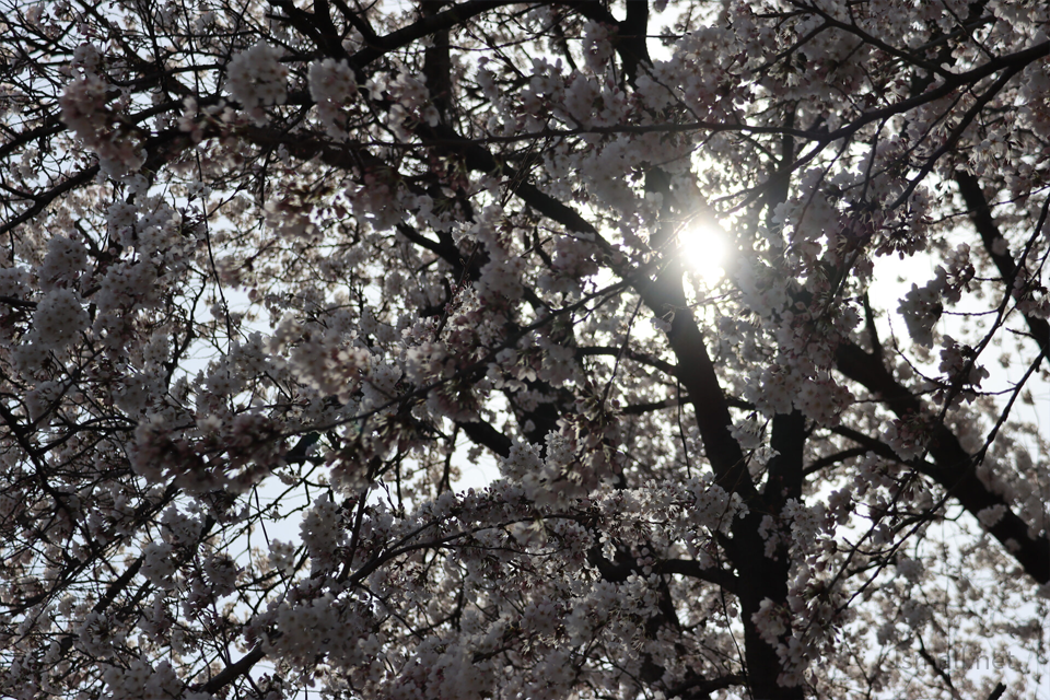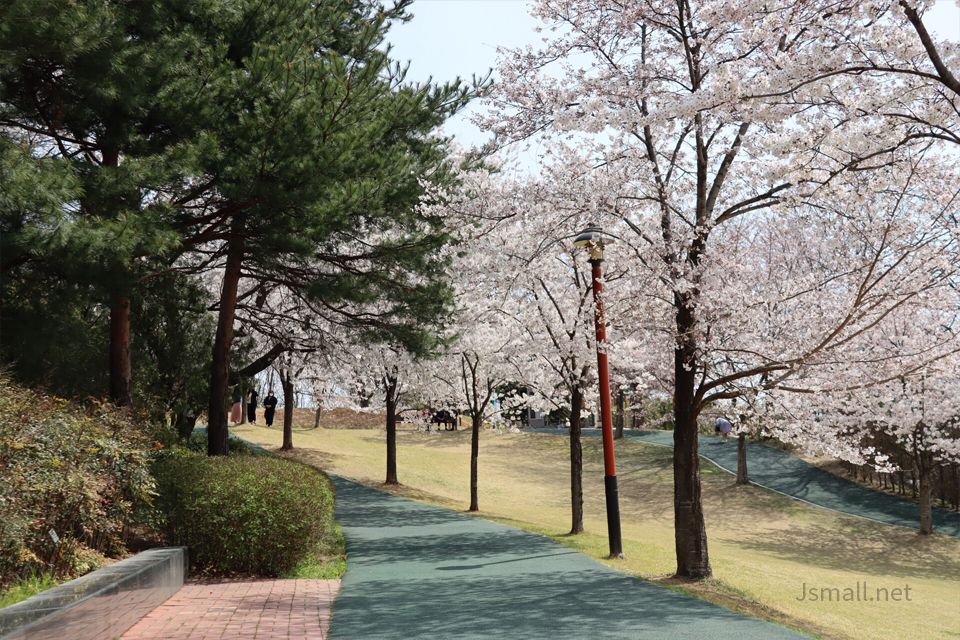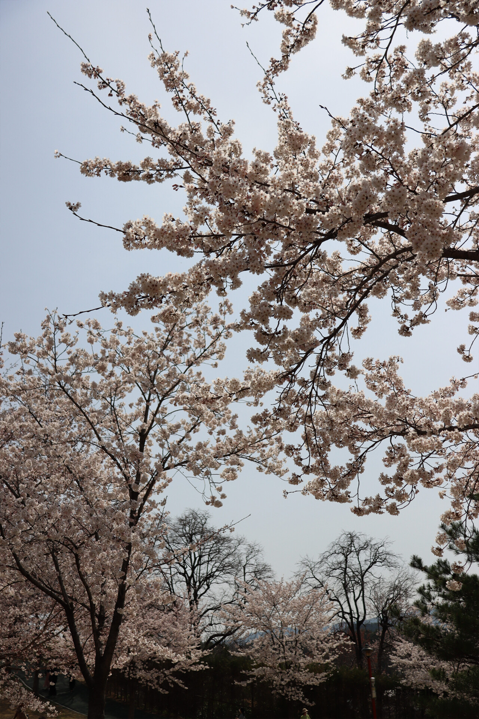 공원 입구? 에서 반대편으로 넘어오니 해가 있어서 더 벚꽃이 밝게 보이네요.