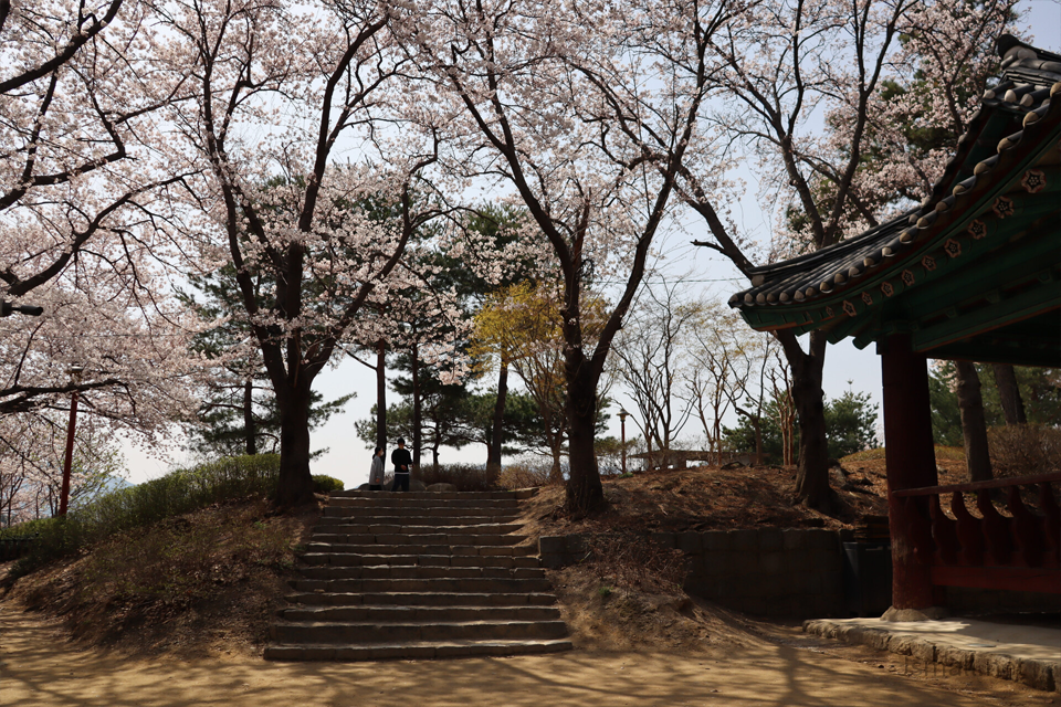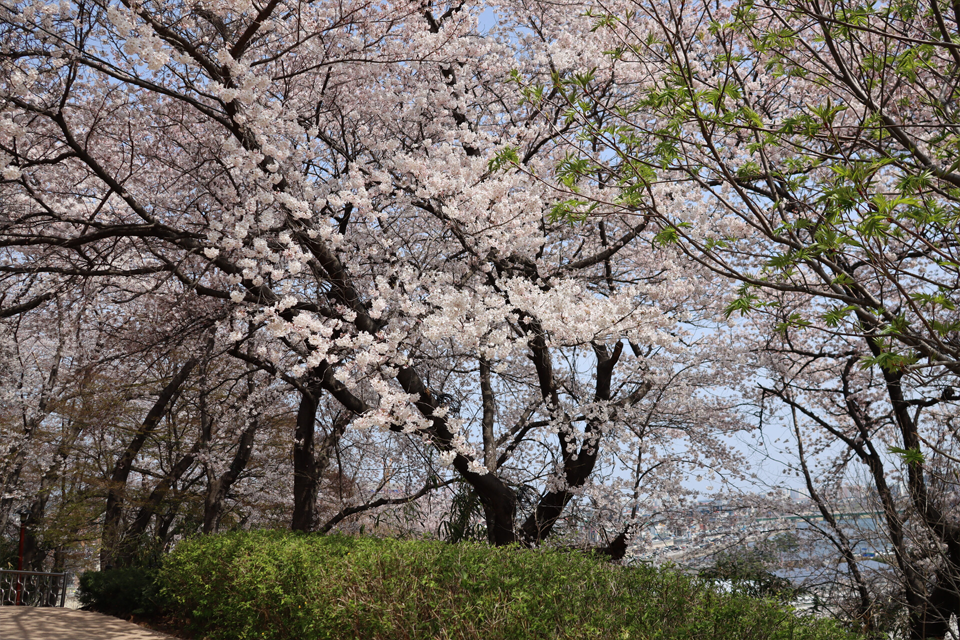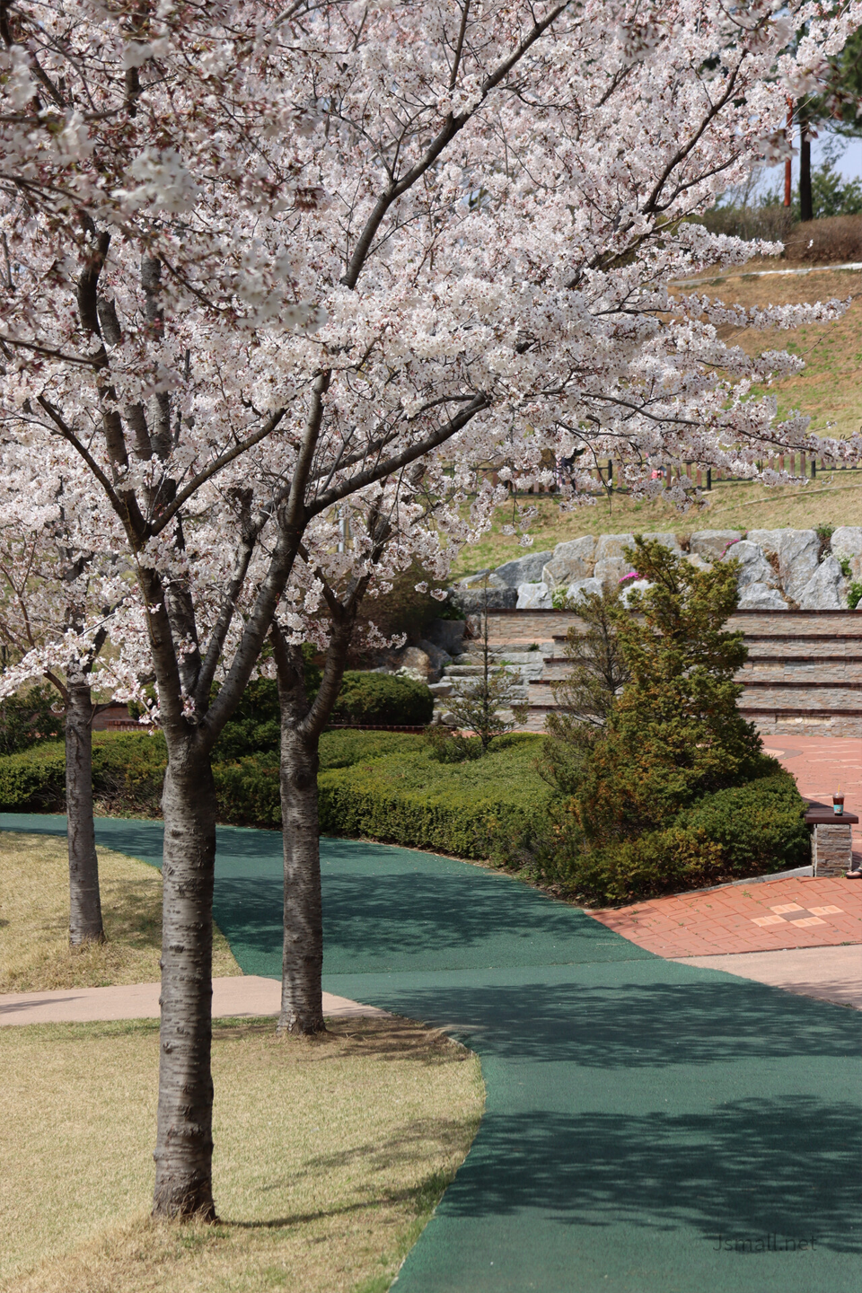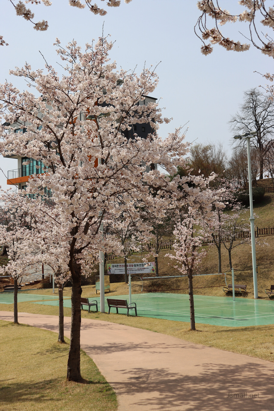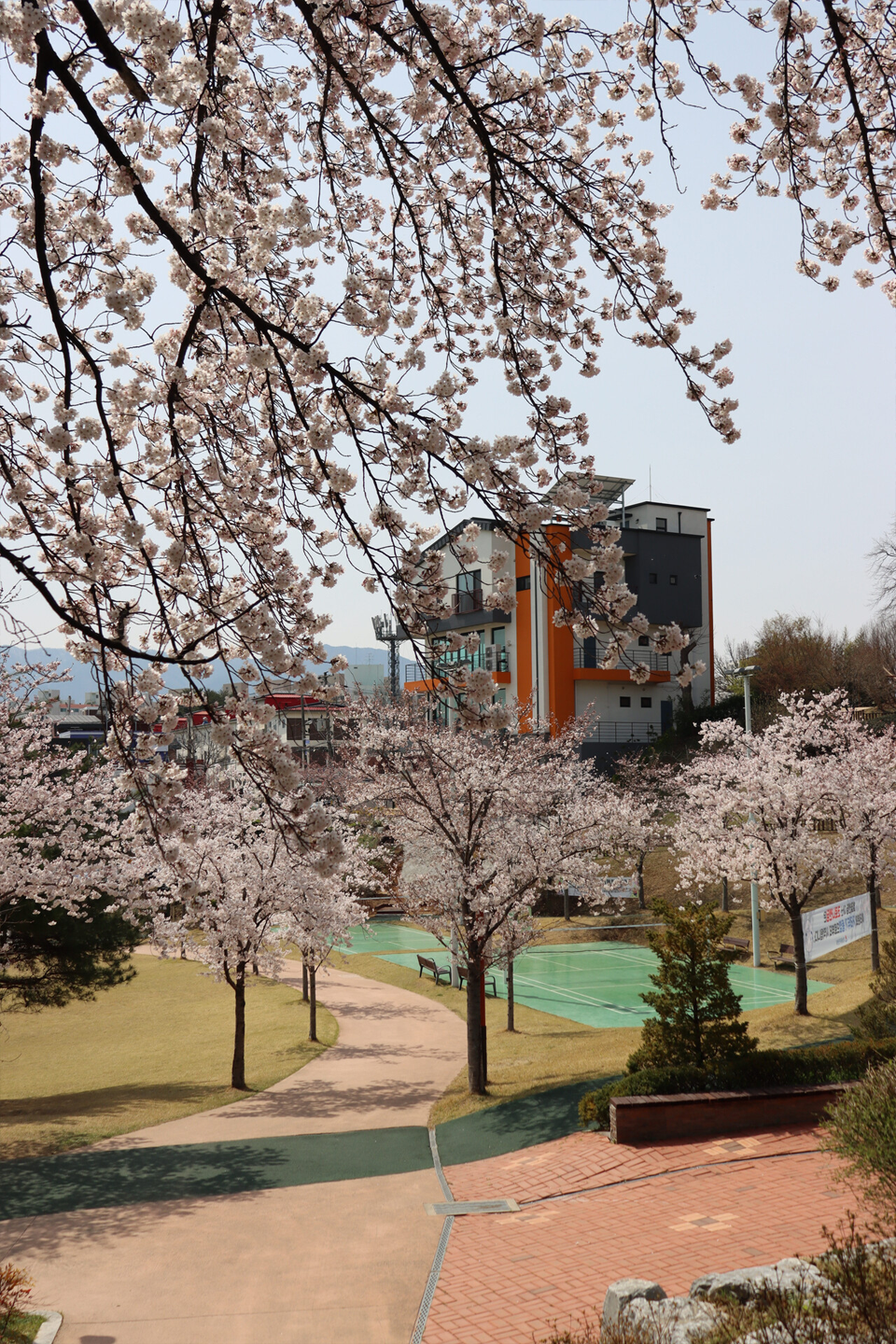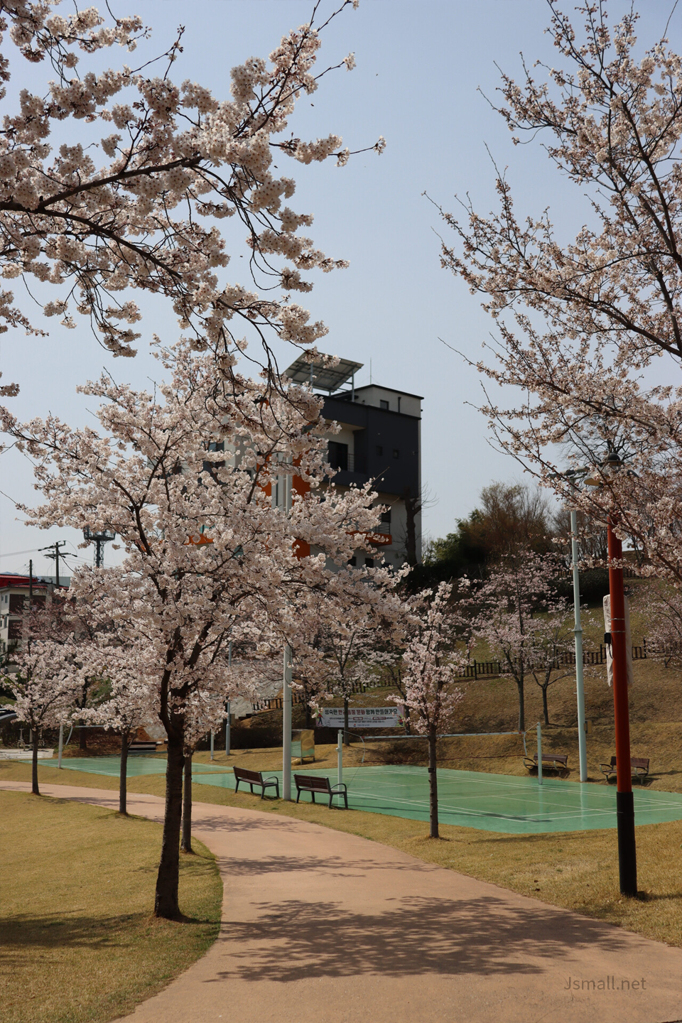 저 뒤편에 벚꽃 들이 무성한곳이 공원입니다.