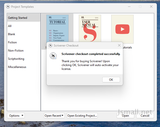 그래서 Scrivener 3 다운로드 해서 설치 그리고 실행을 하고